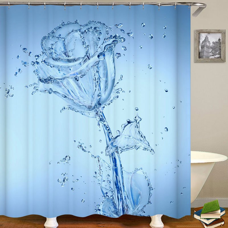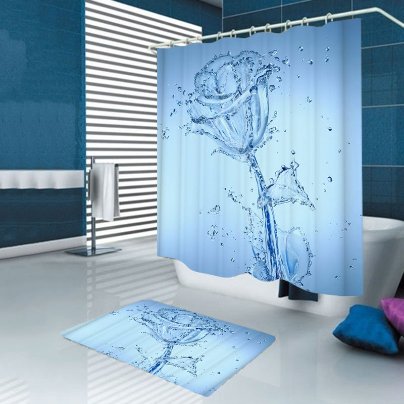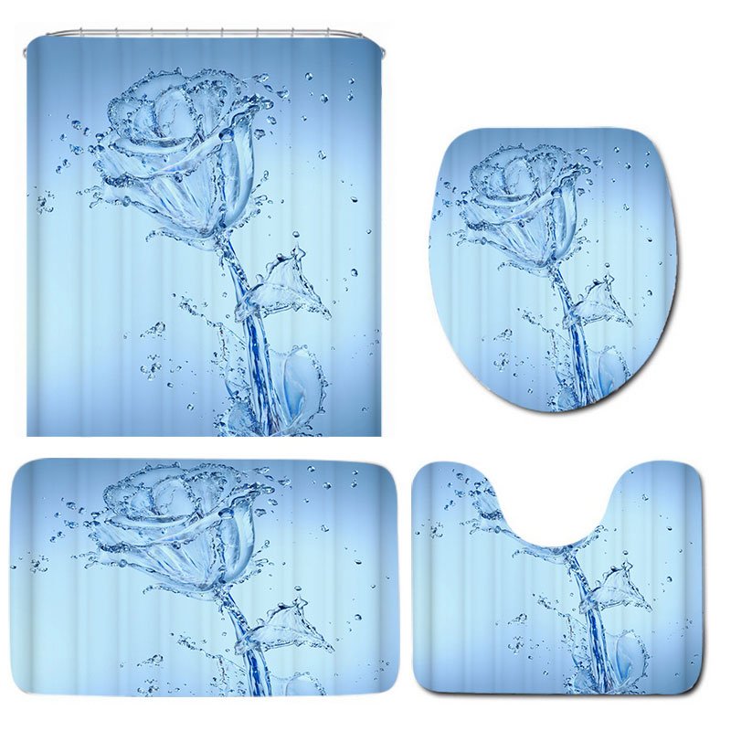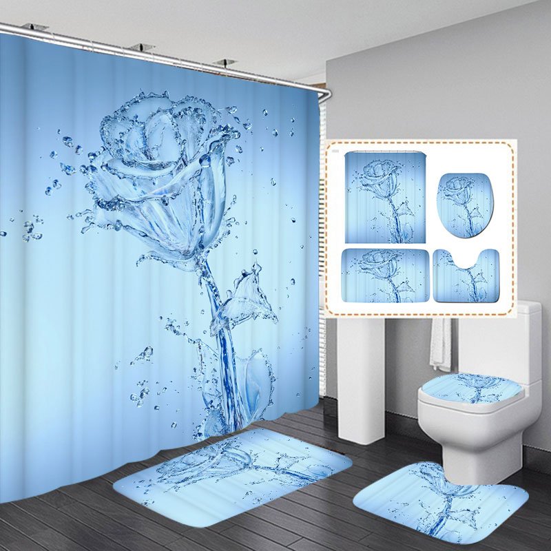 3D Printing Romantic Water Flower Waterproof Bathroom Shower Curtain Toilet Cover Mat Non-Slip Floor Mat Rug Bathroom Set