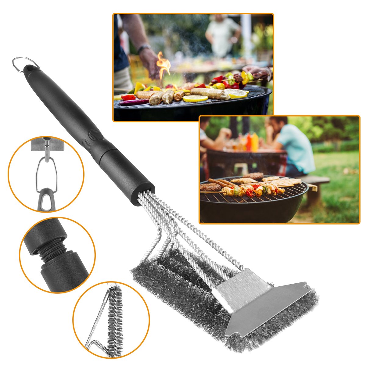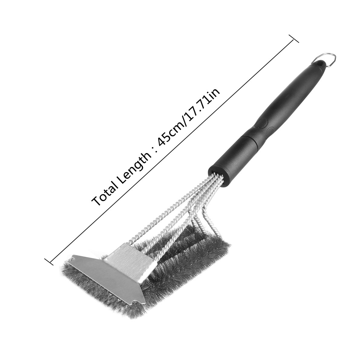 – Comfortable ergonomic handle, long brush handle keeps your hand safe from the heat generated by the barbecue grill.