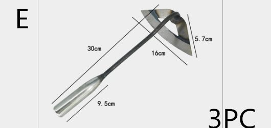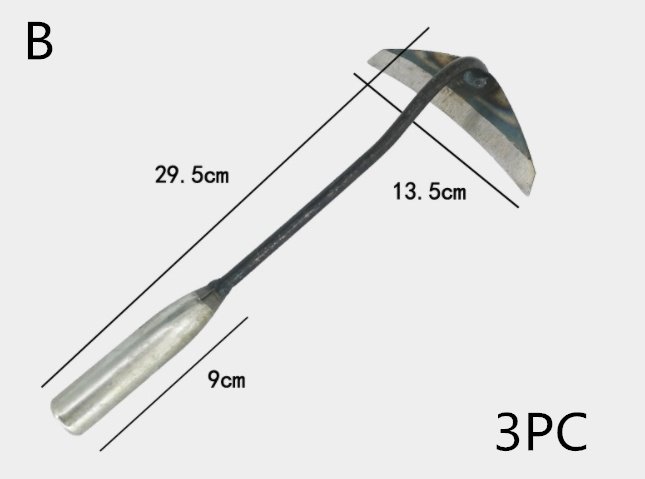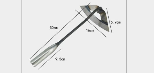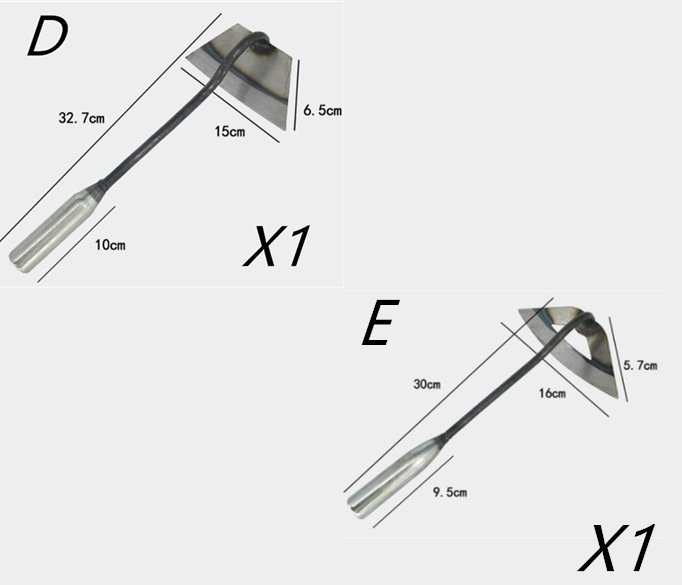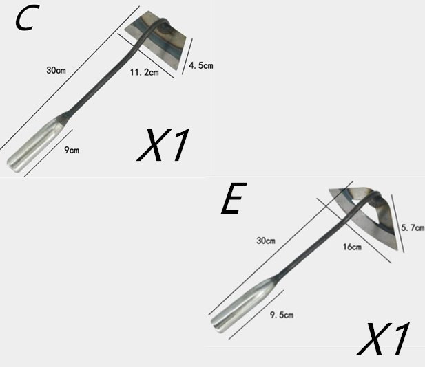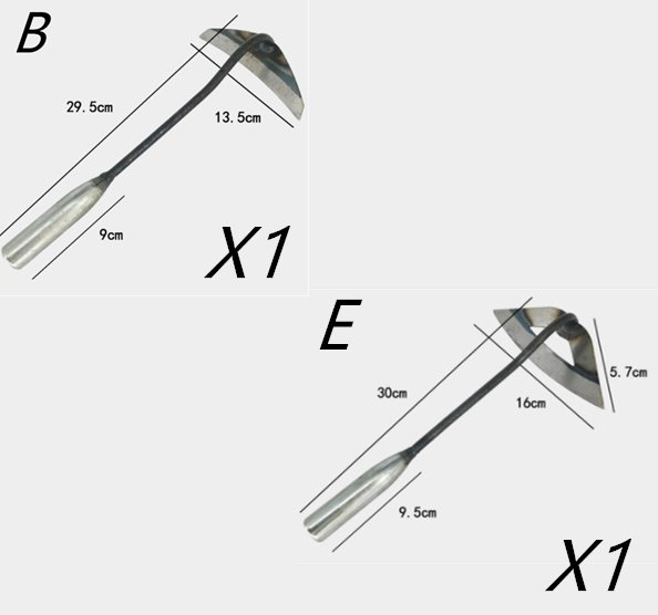 Specifications: Hand-held crescent hoe, hand-held small trapezoidal hoe, hand-held large trapezoidal hoe, hand-held hollow arc hoe