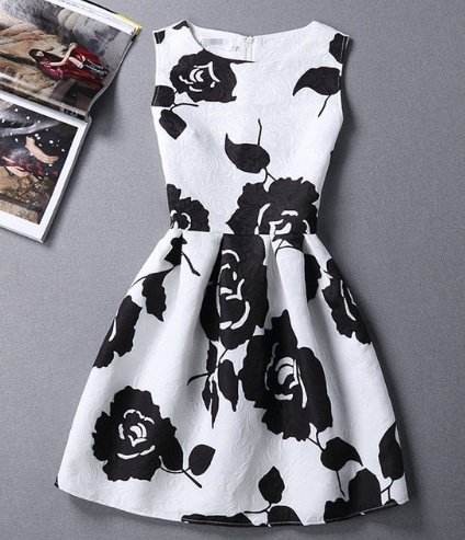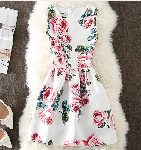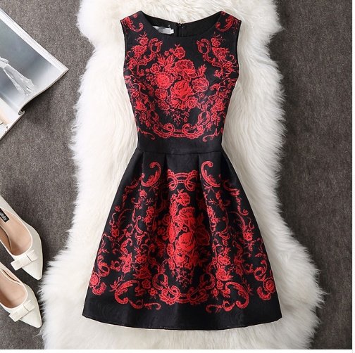 Autumn Winter Elegant Sexy Casual Floral Dress Vintage Sleveeless Party Dresses