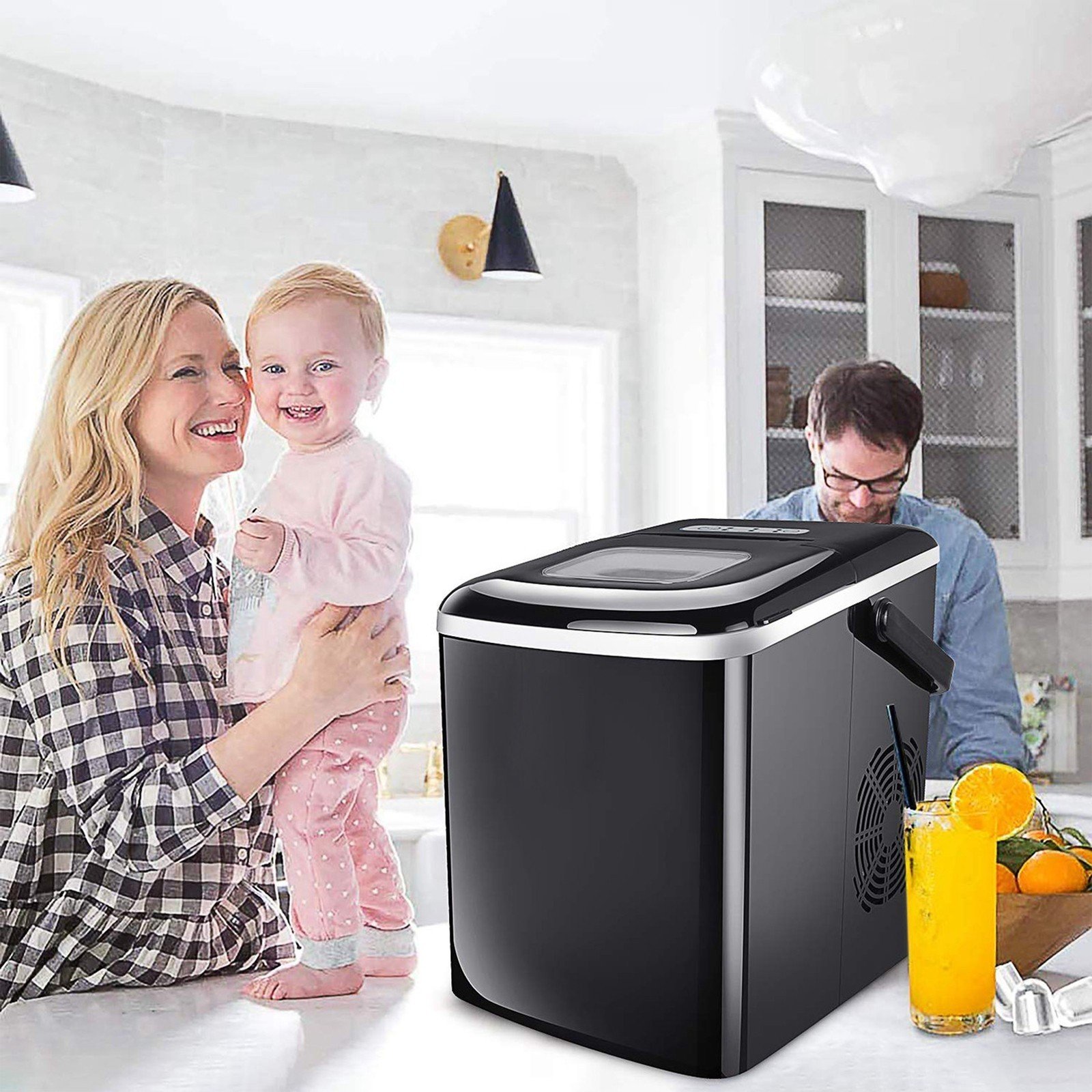 • 【INCLUDES BASKET and ICE SCOOP】 – No installation required; just fill the water reservoir, plug it in and wait for the ice to form. This electric ice maker has an easy to use control panel and comes with a removable ice basket and scoop.