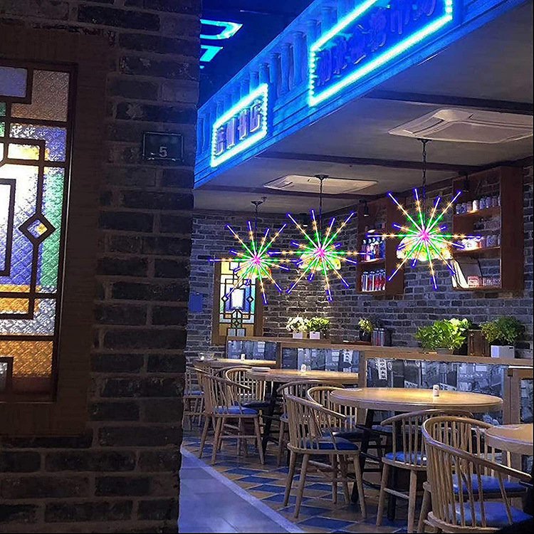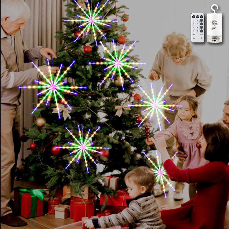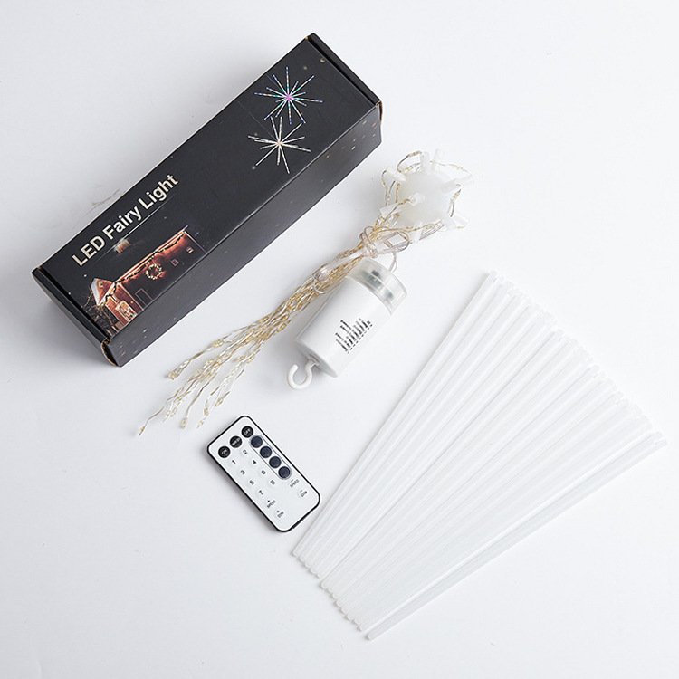 2. Plastic Firework Light-Warm White Star Fairy Light has 14 plastic tubes. There are 112 LED lights inside. It is a practical and durable chandelier. It can be made into a tube according to your preference, but please don’t bend it excessively.
