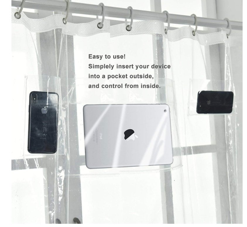 EVA Bathroom Mount Clear Shower Curtains Phone Holder Storage Liner Tablet Phone Holder Waterproof Curtains