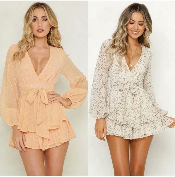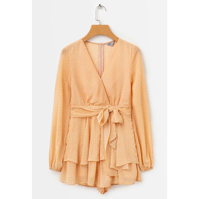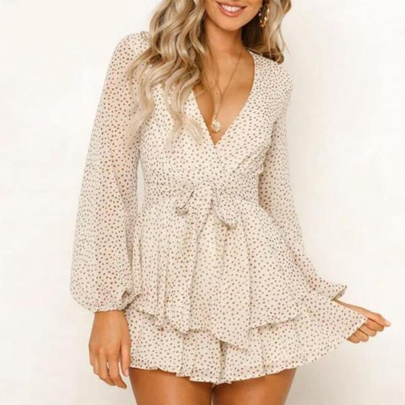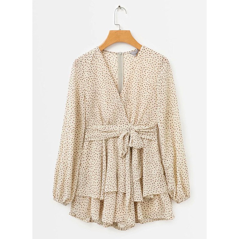 Lantern Sleeve Polka Dot Waist Jumpsuit