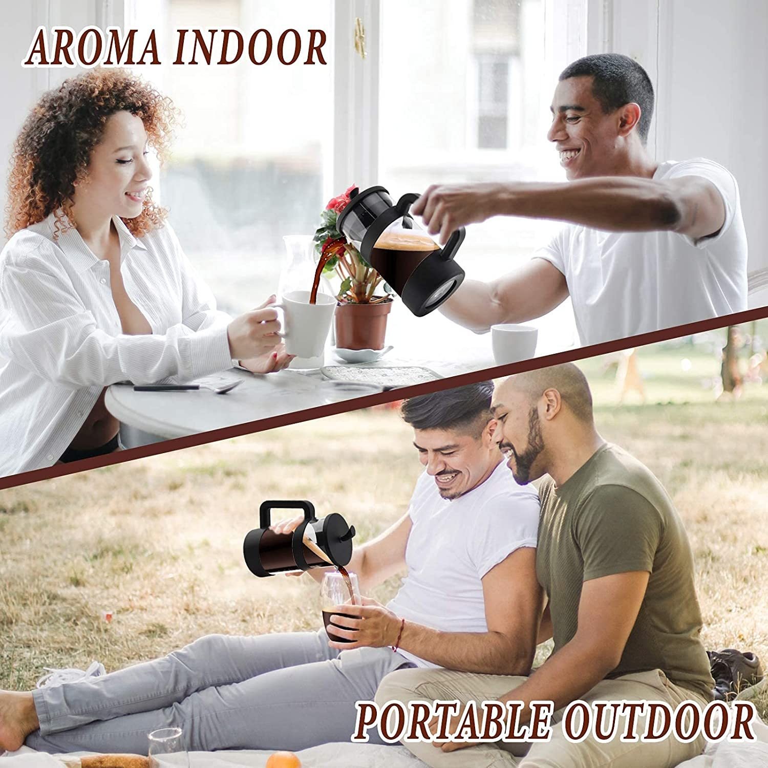 Large French Press Glass Travel Camping Coffee Makers Pot, 34 oz Portable French Press Coffee Maker, Cold Heat Press Coffee Tea Brewer 1000ML Amazon Banned