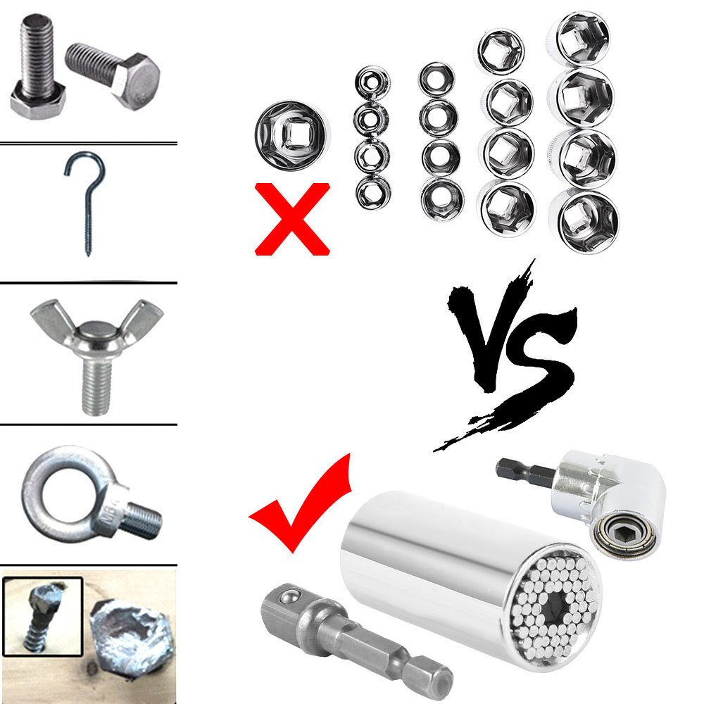 Quick and easy to disassembly and assembly all kinds of screws, hooks, lag screws, and bolt heads etc. Self-adjusts to fit thousands of fasteners.
