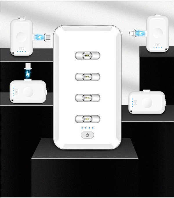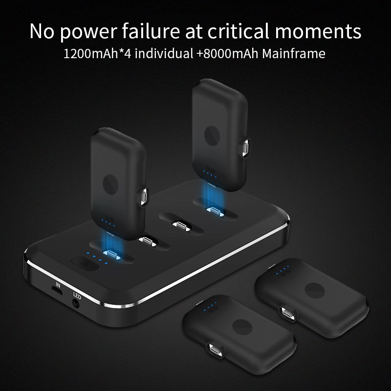 Power capacity: 8000 mAh for mother + 4 1200 mAh for small charging treasure, 1200 mAh for small charging treasure