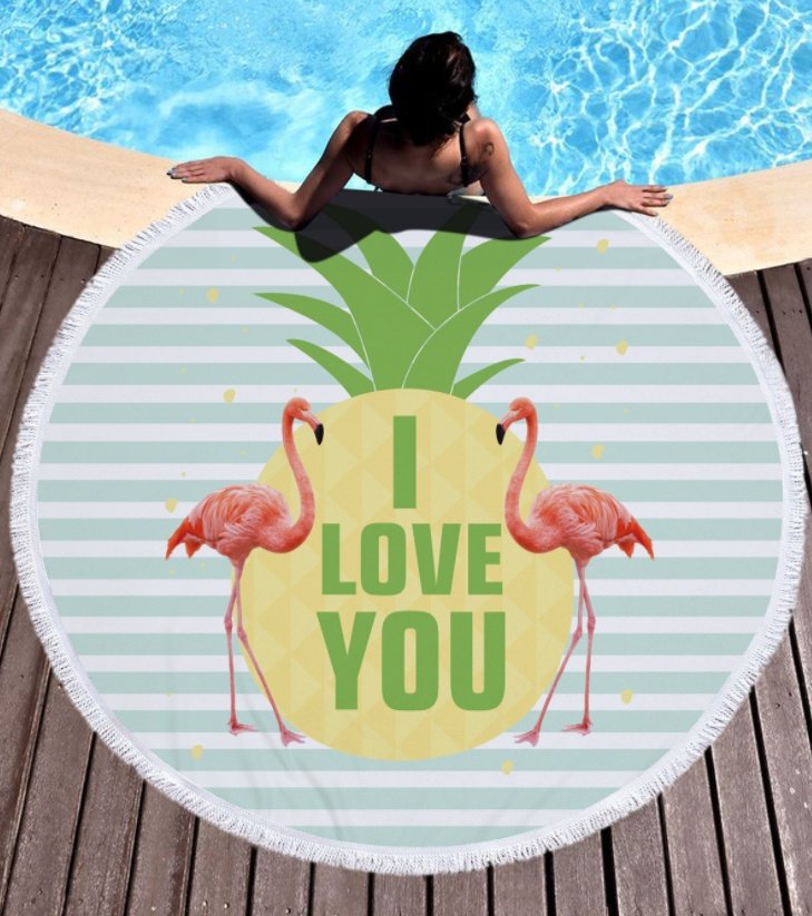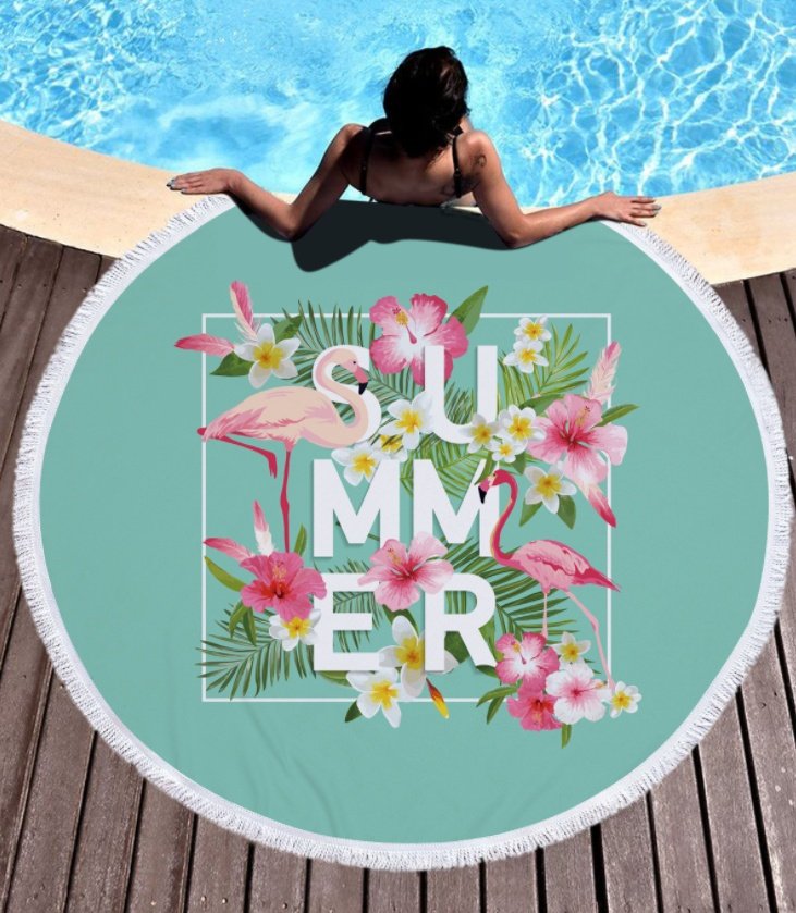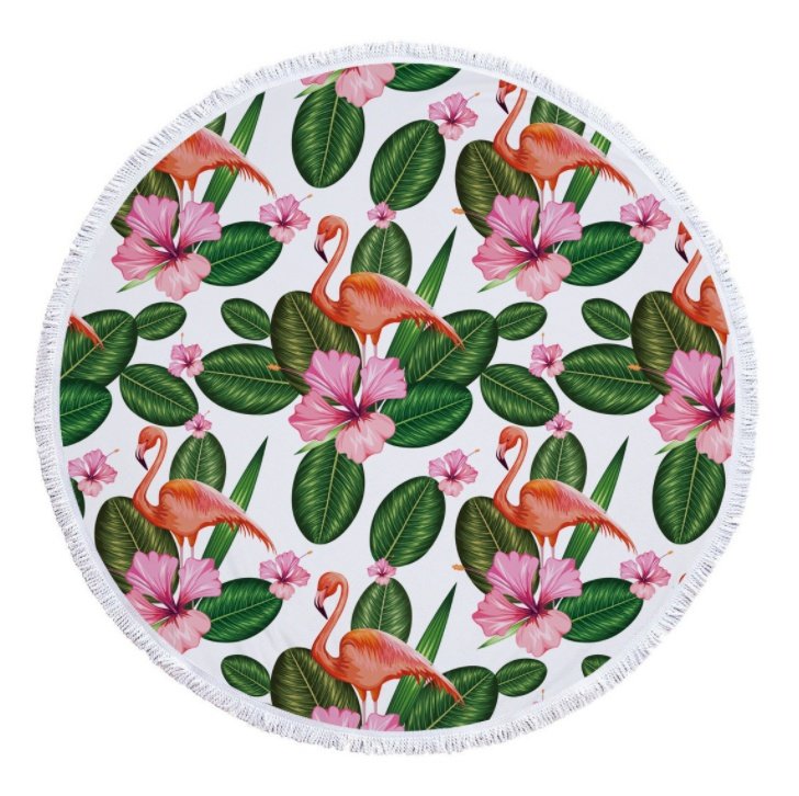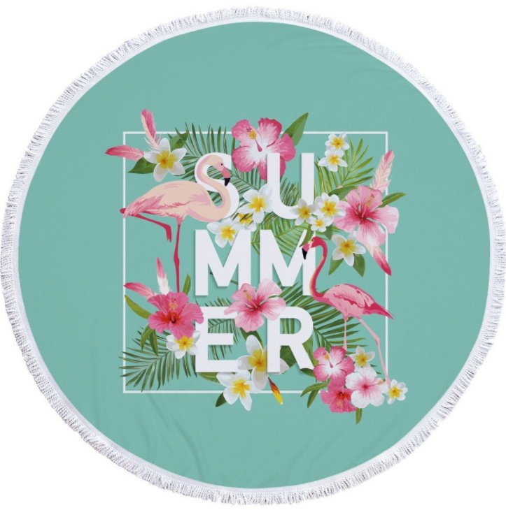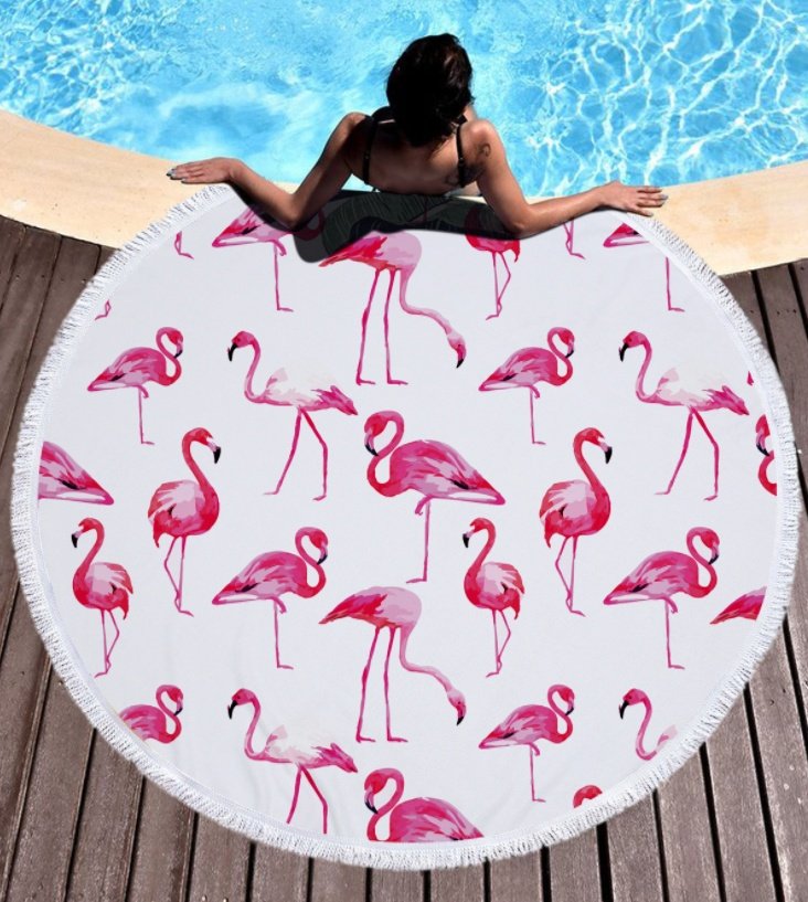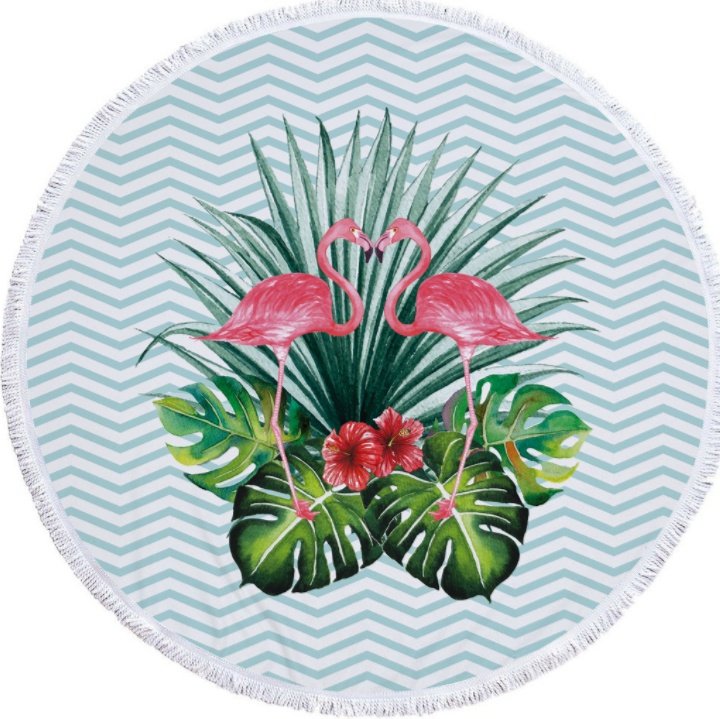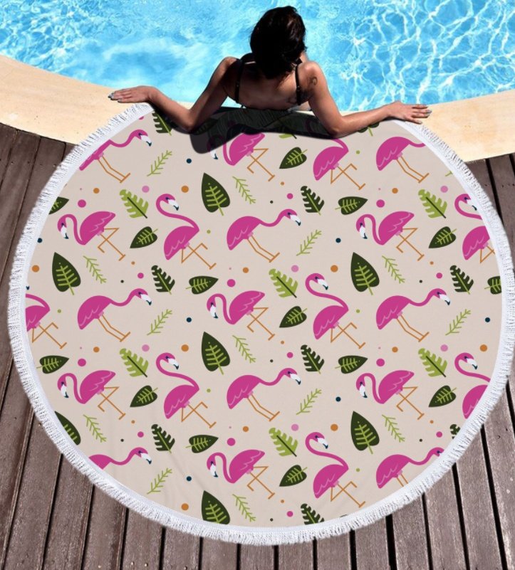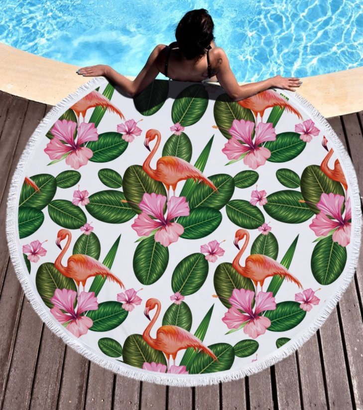 Microfiber plus fringed round beach towel bath towel yoga mat customizable flamingo new