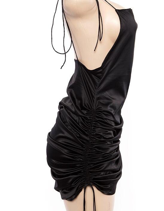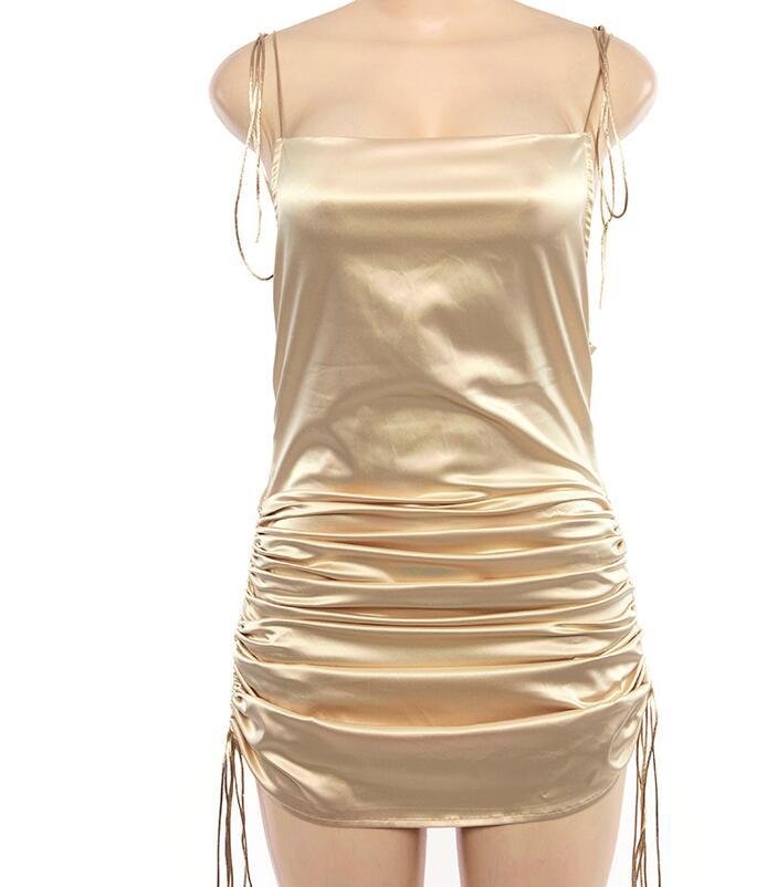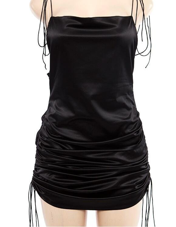 Spaghetti with solid backless sleeveless dress