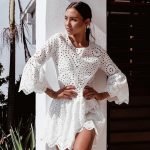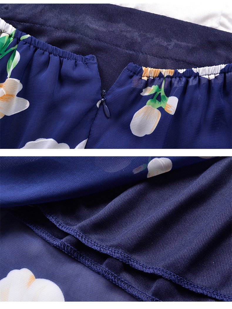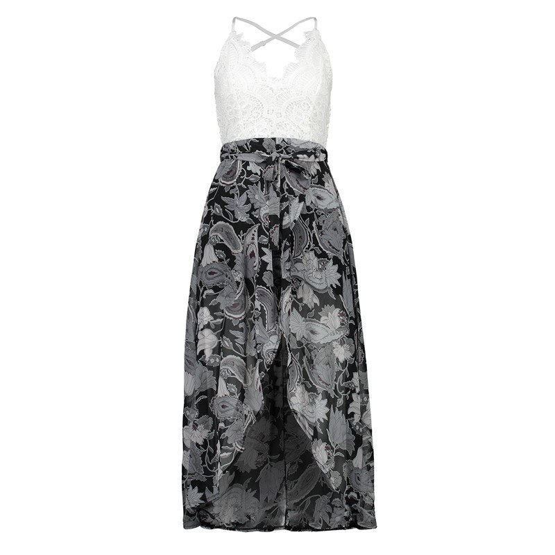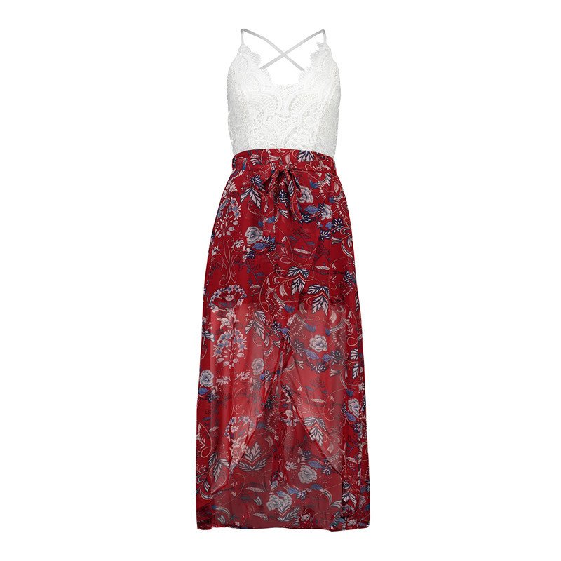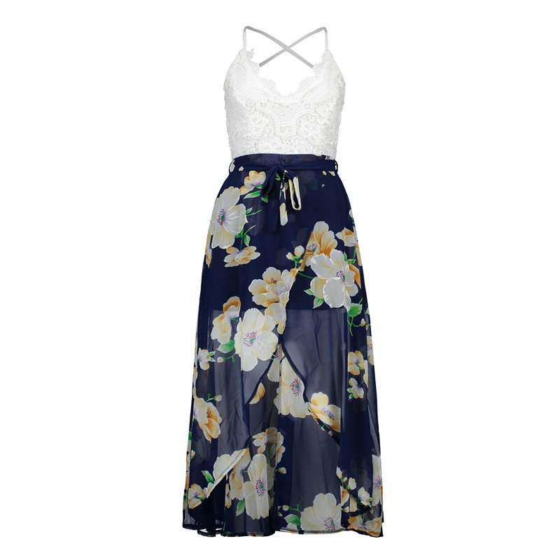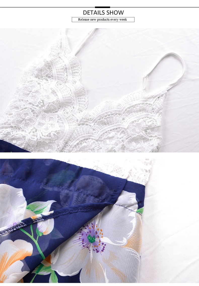 USA SIZE Lace stitching printed sling V-neck holiday beach long skirt split cheongy dress