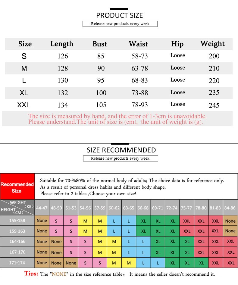 | Size | S | M | L | XL | XXL |