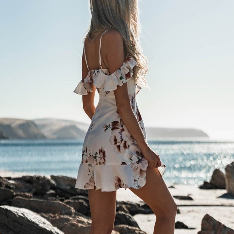 Be the first to review “V-neck sling print hem ruffled dress”