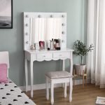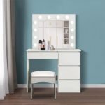 Vanity Set With Lighted Mirror Cushioned Stool Dressing Table Makeup Table