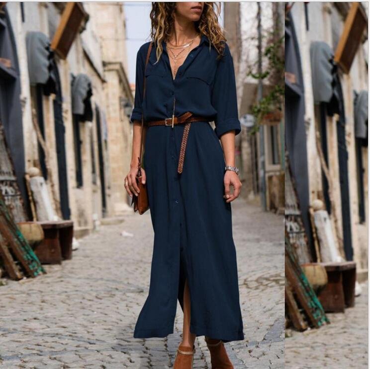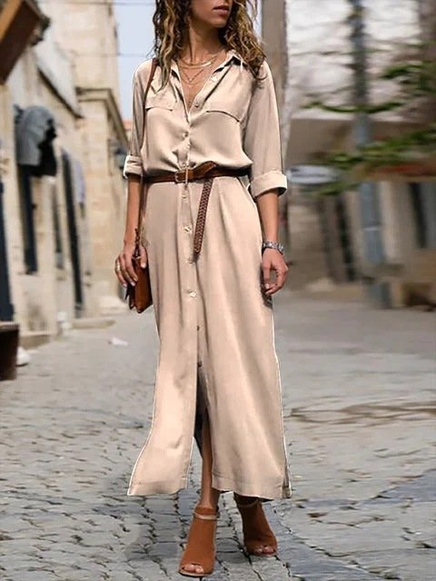 Women’s Solid Color Long Sleeve Split Long Skirt